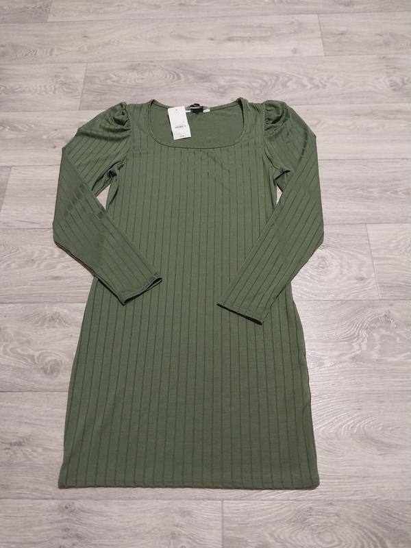 Жіноча сукня Розмір - 38 Колір- хакі Склад - поліестр Заміри- пог-41 см. поб- 41 см. довжина- 83 см. довжина рукава- 60 см. Гарний квадратний виріз вороту, та зібрані плечі рукава , додають елегантності та витонченості. За питань звертайтеся в особисті.