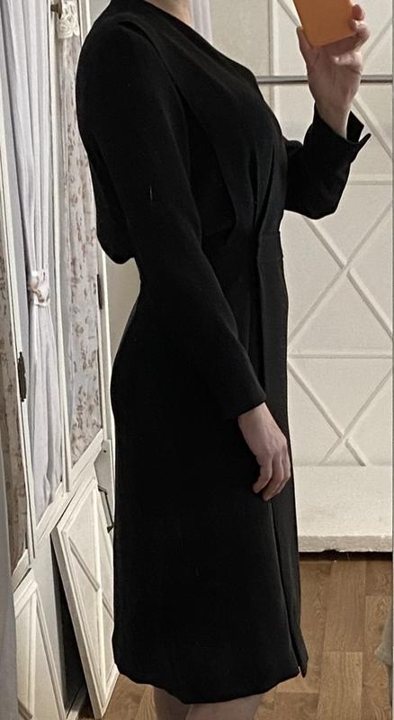 Платье на запах,размер «М»,небольшая «L”.Длина-112см,плечи-41см,рукав-56см,ширина от подмышки к подмышке полуобхват-54см,талия полуобхват-38см,бедра полуобхват-52см,насыщенный черный цвет.