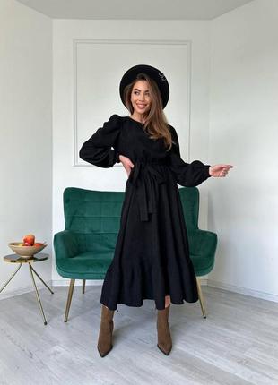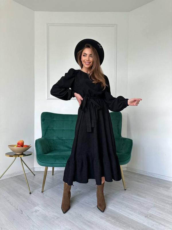 Трендова сукня міді ▫️Розміри:42-44,46-48,50-52 ▫️Тканина-вельвет на х|б основі Опис: 🎀довжина міді,120 см; 🎀рукав фонарик На талії резинка ,одягається під пояс Мод 101