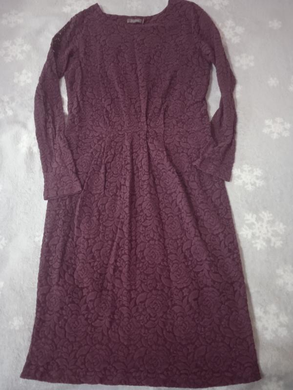 Гарна жіноча сукня марсалового кольору з гіпюру на підкладці. Заміри: НОГ - 46 см, НОТ - 39 см, НОБ - 46 см, Довжина - 100 см, Рукав - 64 см.