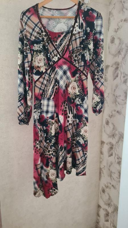 Сукня від українського віробника Lila. Здовгим рукавом на резинці. Спідниця асиметрична. Розмір і склад на фото