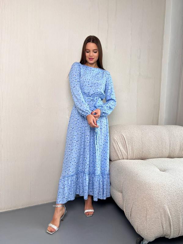 Жіноча сукня довжини міді Розмірний ряд S,M,L,XL Тканина турецький штапель, дуже якісний та приємний на дотик Кольори білий, чорний та блакитний У комплекті пояс Сукня у ніжний квітковий принт, можно вдягати під різне взуття та на будь -який випадок Супер якість