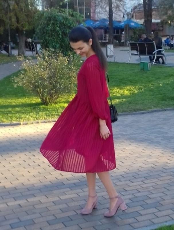 Платье вишневого цвета, свободного кроя. Параметры длина 102см, плечи 35см, полуобхват груди 44,5см, пот 42см, рукав 52см. Платье: длина 90см, пог 44,5см, поб 50см.