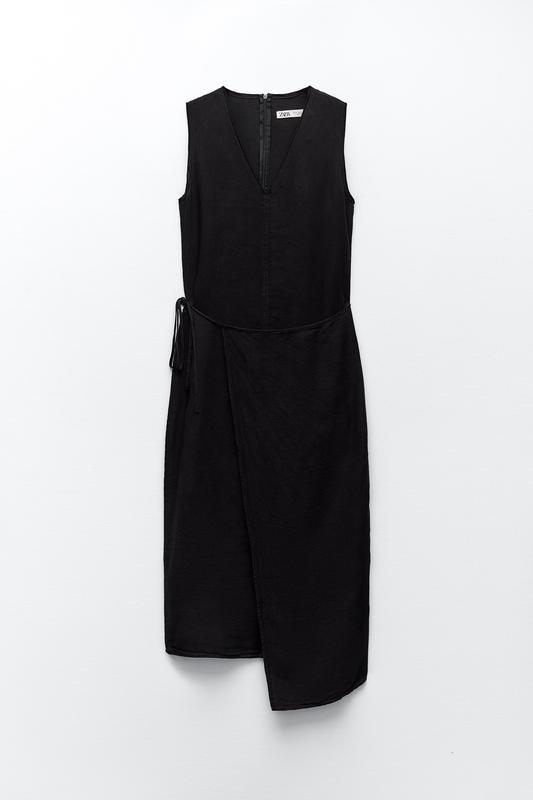 черное ляное платье на запах ЗАМЕРЫ РАЗМЕР S может быть а М п.о. грудь: 46см п.о талия: 46см п.о бедра: 48см плечо от линии воротничка: 8см Длина платья: 133см