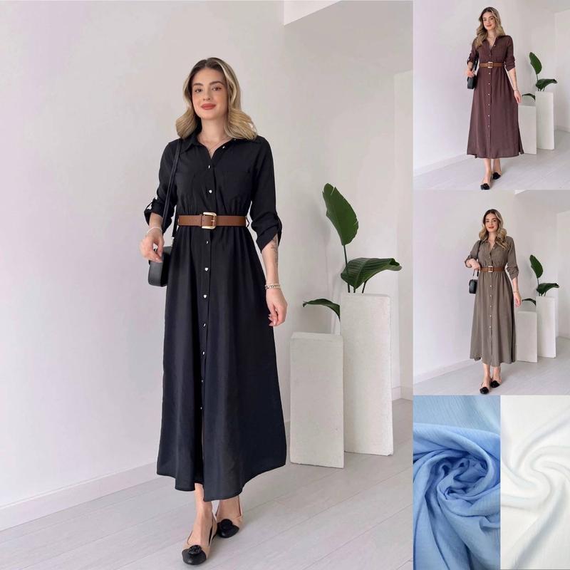 Модель 5514 Женское платье Размерный ряд S (42-44); L(46-48);XX(50-52); XXX(54-56) Ткань американский креп жатка, очень приятная на ощупь, не просвечивается) Цвета черный, шоколад, мокко, голубой и белый Платье с длинным рукавом, которое можно аккуратно регулировать, застегивается на пуговицы Талия на резинке, за счет чего идеально садится по фигуре Накладные карманы У комплекті пояс Очень стильная модель, можно носить под разную обувь и надевать на любой случай Супер качество Цена 750 грн
