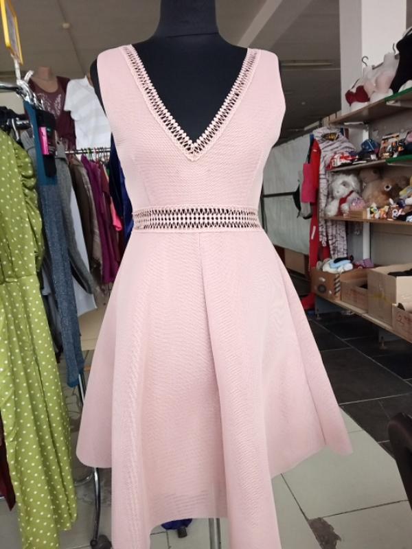 нарядное женское платье, размер, цвет пудра, ткань полотна мягкая сетка двойная, на подкладке, объем груди 92см, талия 72см., длина 95см