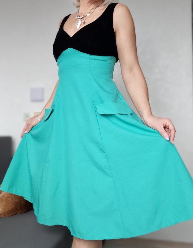 Нова, без бумажної бірки. (є кліпса верх оксамитовий, низ - габардин, виглядає чудово! розмір 44, колір бірюза. ПОГ 40-45, ПОТ 35-40, бедра вільні, довжина 103