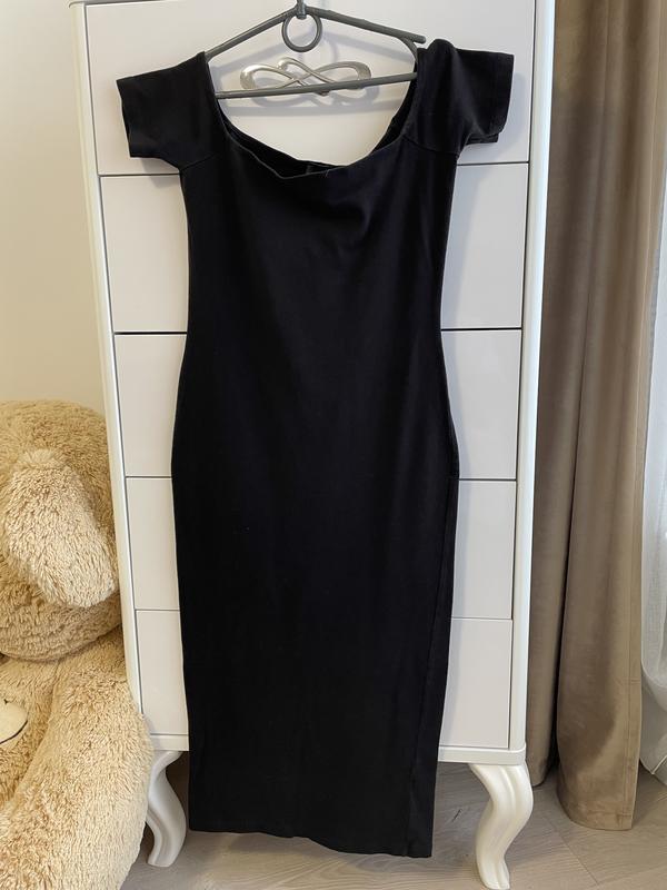 Чорна базова сукня-олівець з при відкритими плечима. Довжина 100 см ПОТ - 31 Добре тягнеться. Підійде на розмір S-M