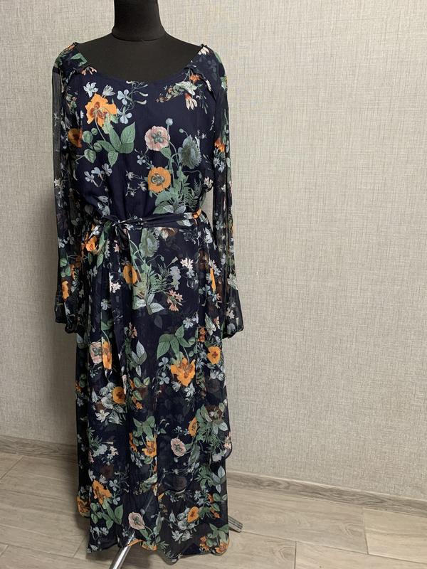 Платье Yessica длина миди в размере L. Сбоку на молнии.длина по спине от плеча 120 ПОГ54 ПОТ45 Оригинальная спинка выполнена, прозрачные рукава.