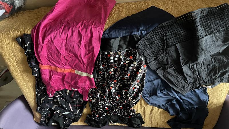 все размер XS/S, бренды разные, продаю свои вещи, не секонд, без нюансов и разгрузки огромный гардероб, гладить перед фото не малую пору, выкладывать отдельно очень долго и сложно, поэтому такая цена, перед отправкой выглажу обязательно, замеров на лоты не #, все соответствует размерной сетке. Цена за весь лот, отправляю безопасной оплатой/полной/ наляжкой