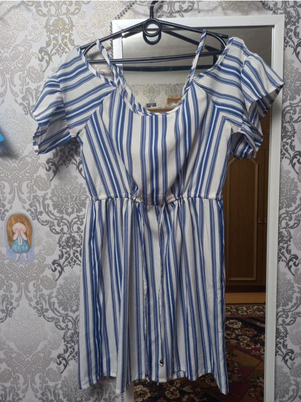 Легкое летнее платье в полоску, должно быть свободное, брители регулируются, на талии кулиска. Замеры на фото