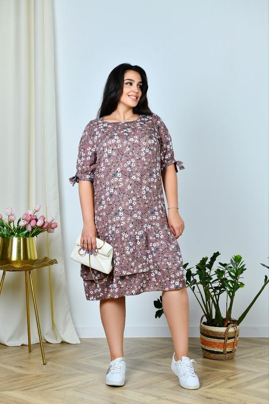 Ніжна сукня вільного крою із натурального турецького штапелю з воланами. Рукава з розрізами і на манжетах із завʼязками. Гарно сідає по фігурі, не просвічується Матеріал:натуральний турецький штапель Країна виробник:Україна Кольори:джинс, смарагд, білий, мокко, бірюзовий, оливка Розміри:від 50 до 64 Виміри згідно готового виробу Розмір 50-52 54-56 58-60 62-64 Обхват грудей 108 116 124 132 Обхват талії вільн. вільн. вільн. вільн. Обхват стег********** 142 Довжина виробу 102 104 106 108 Довжина рукава 33 34 35 36 Ширина рукава 41 44 47 50 Зріст моделі:171 см Розмір, вдягнений на моделі:54-56 Параметри моделі на фото:обхват грудей 110, обхват талії 87, обхват стегон 112 вш