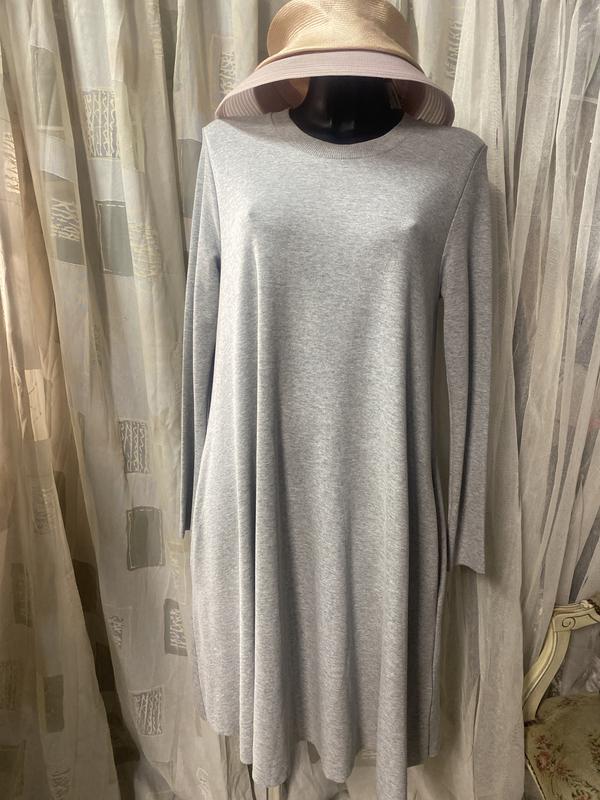 Стильное трикотажное платье свободного кроя от COS. Цвет серый. Два кармана в боковых швах. Состав:вискоза/полиэстер/эластан(78/20/2). Размер по набору-М. Замеры:длина-100 см, ПОГ-48 см, рукав-63 см