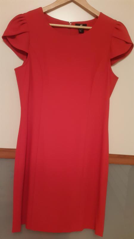 Платье H&M алого цвета, приталенного силуэта с оригинальным коротким рукавом, молнией сзади может выступить в качестве как делового так и вечернего костюма. Размер 44(EU). Ширина плечей 38 см ОГ 94 см ОТ 86 см ОБ 102 см Длина рукава 13 см Длина по спинке 93 см Вещи личные, не С/Х.