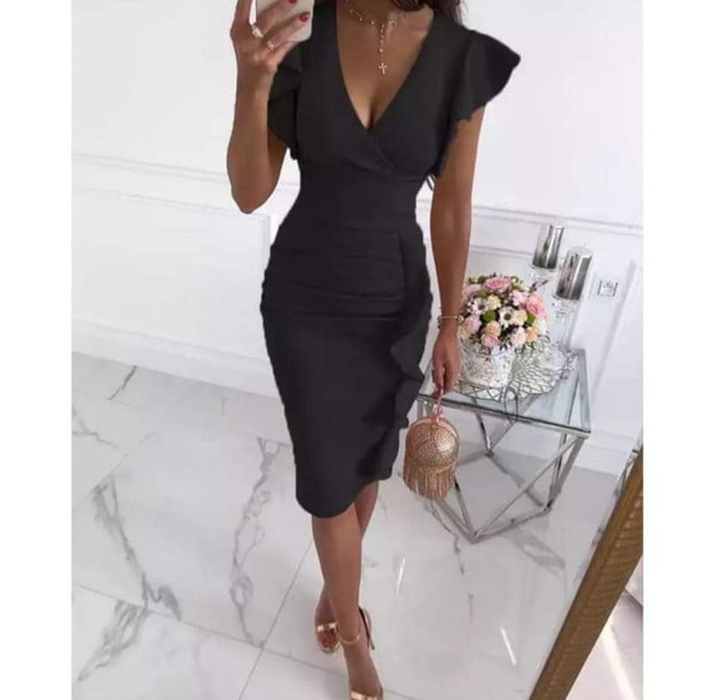 платье вечернее с воланами на рукавах, размер 42-44. Цвет: черный. Тканина: костюмний креп. дополнительные замеры снабжам в уведомлении.