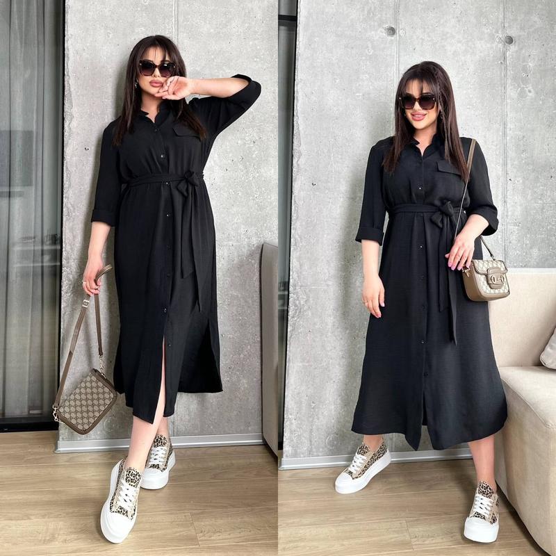 ⬆️Сукня Арт 2545-24❤️111б Ткань американский креп Цвет черный, Бордо, зеленый, синий Размер 48-50, 52-54, 56-58 Платье рубашка, застегивается на пуговицы, рукав 3/4, по бокам разрезы, воротник стойка.