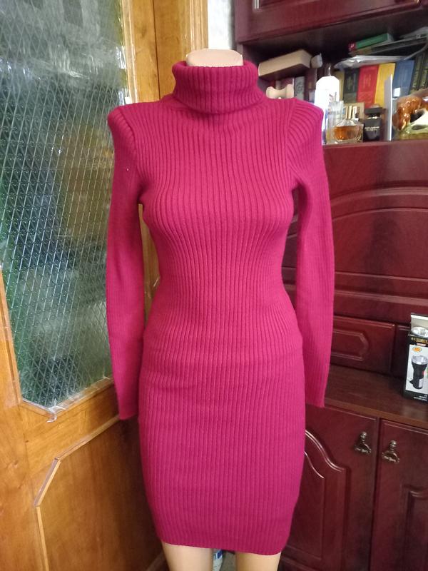 Вязаное платье гольф в рубчик в отличном состоянии.