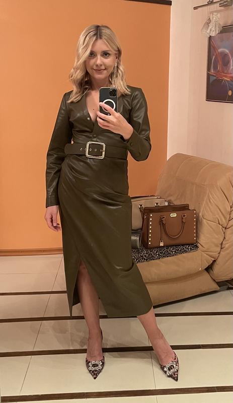Платье с разрезом из экокожи Zara, почти новое. Оделала 1 раз. Размер XS. На фото - платье на мне. Мой рост - 162 см. Пояс идет в комплекте