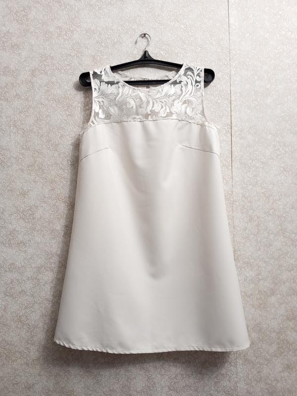 Подписывайтесь на мою страницу. БЕЗПЕЧНА оплата После платья (на карточку) ТОЛЬКО через УКР ПОШТА!!! Белое платье, платье Кружевная кокетка. Размер не указан. Смотрите замеры. Ткань плотная, не тянется. По плечах 36 ПОГ 52 Длина 86