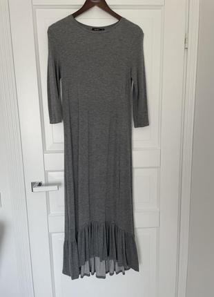 Стильное платье, которое подходит как под спортивную обувь, так и под классическое. Легкая и приятная к телу ткань, качественная - не скатывается. Состояние новой вещи, без этикетки. Замеры: Плечи - 42 см Длина рукава - 44 см Длина спереди по центру ~ 117 см Длина сзади ~ 138 см ПОГ - 40 см ПОТ - 42 см ПОБ - 44 см Ткань хорошо тянется, замеры выполнены в нерастянутом состоянии