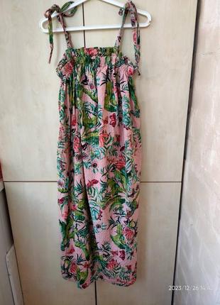 Тип одягу: Сарафани Сарафан H&M р-р L. Бавовна. Виміри: напівобхват грудей 35 (резинка), напівобхват стегон 77, довжина 90 (без урахування лямок, тільки полотно). У хорошому стані, але є дефект (останнє фото).