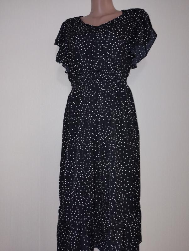 Длина 115, грудь 52 см, талия 38/52 см (резинка), бедра 90 см, по низу оборка.
