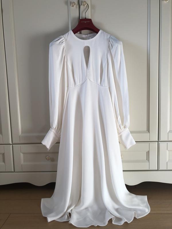 Zimmermann , новое элегантное платье Новое без бумажной бирки, цвет кремовый ( по паспорту Cream ), размер 2 дизайнерский - Плечи 30 см Пог 45 см ( за счет вытачек сядет на грудь до 94 см ) Талия 40 см Бедра свободно Рукав 69 см Длина 122 см Состав - подкладка 100 % вискоза Основная ткань - 100 % вискоза На спинке и рукавах молния , также есть кармашки Цена бутика 750 евро, цена продажи 390 евро по курсу Пумб на день оплаты