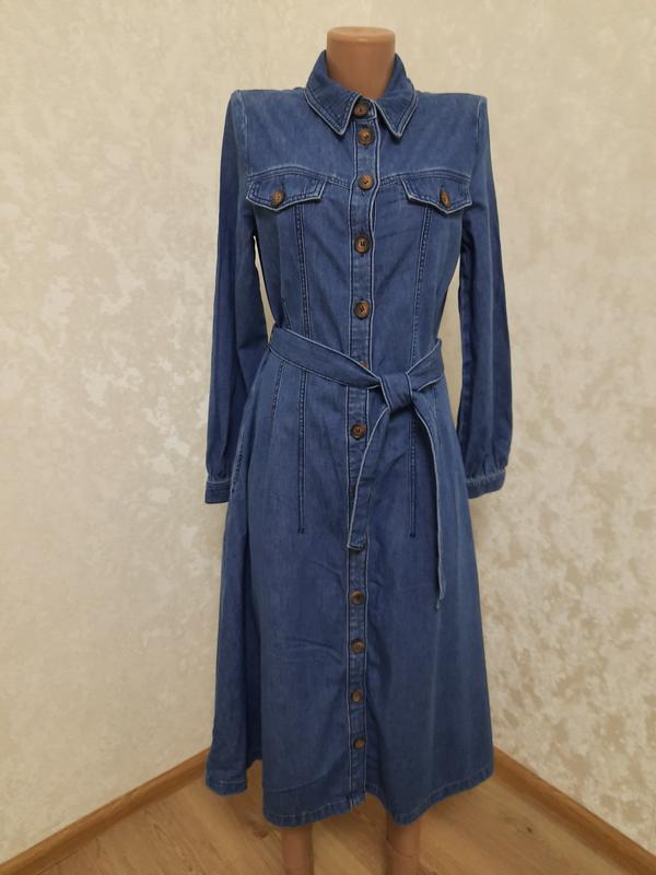 Шикарное джинсовое платье рубашка с контрасными пуговицами. Есть карманы. Замеры: ПП 38 ПГ 51 ПТ 43 ПС 68 Длина 117 Рукав 64