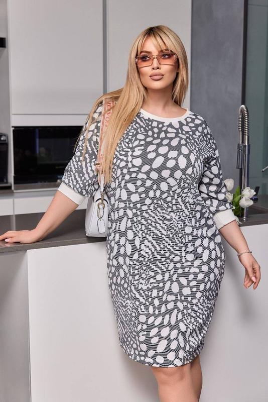 Платье-туника в спортивном стиле🤍🖤Ваш новый захват😉🤍🖤Комфортная и удобная,меет боковые карманы🔥Стильні принти,тканина не мнеться Ціна980грн Арт.7145 Р:48-52;54-58! Ткань:трикотаж "джерси"! Отделка:итальянский трикотаж