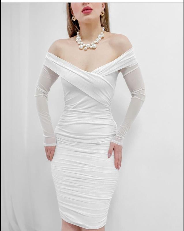 белое платье-сеточка размер 12(М) полуобхват: грудь-36см(тянется до 45см) талия-30см(тянется до 35см) бедра-38см (потянется до 50см) рукав-60см Длина платья-100см