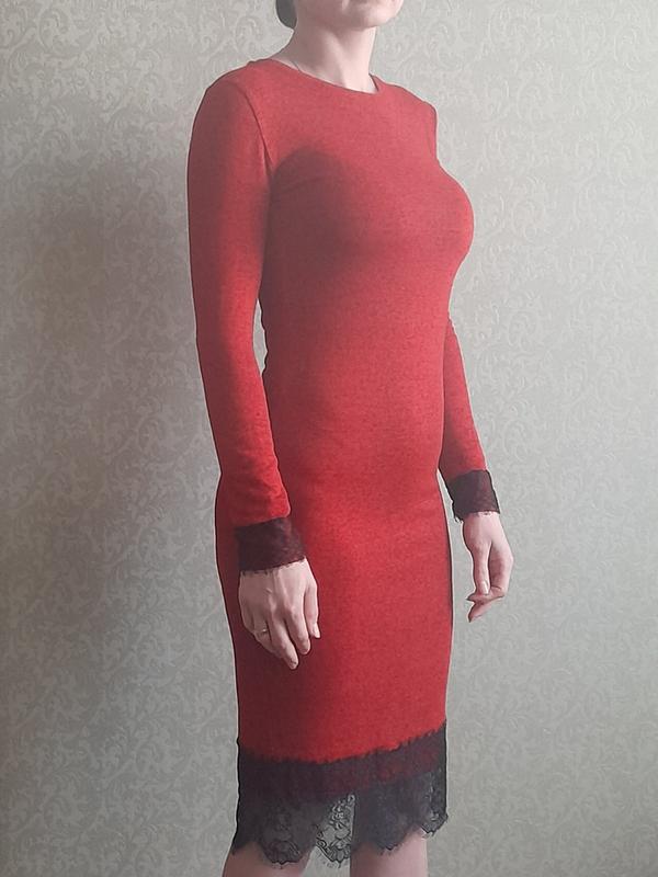 Чудова сукня, розмір S . Стан нової. Тканина віскоза, приємна до тіла - гарно тягнеться. Фактична довжина сукні включаючи круживо 106 см, довжина рукава від плечка- 61.5 см.