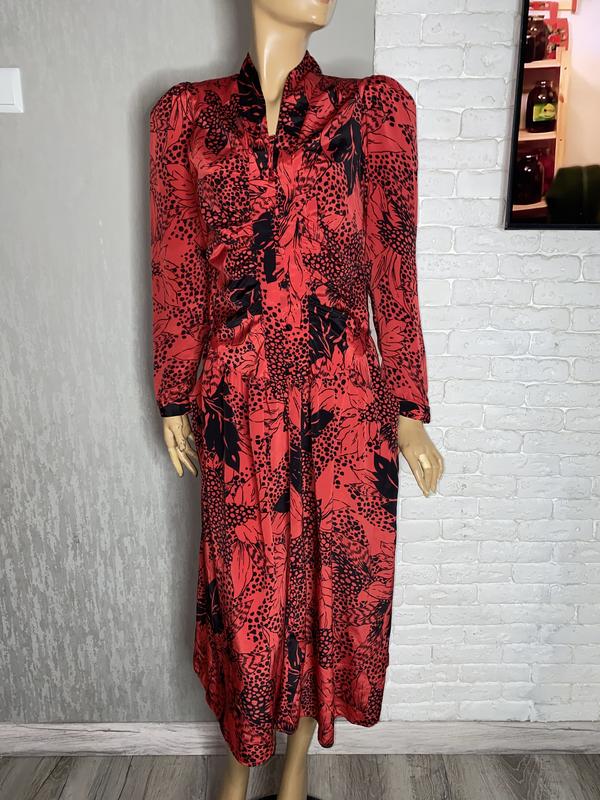 Длина 120см, рукав 60см, ПОГ 48см, ПОТ 42см, ПОБ 82см, по бокам есть карманы. Выглядит на шелк на ощуп, Бирки со составом нет