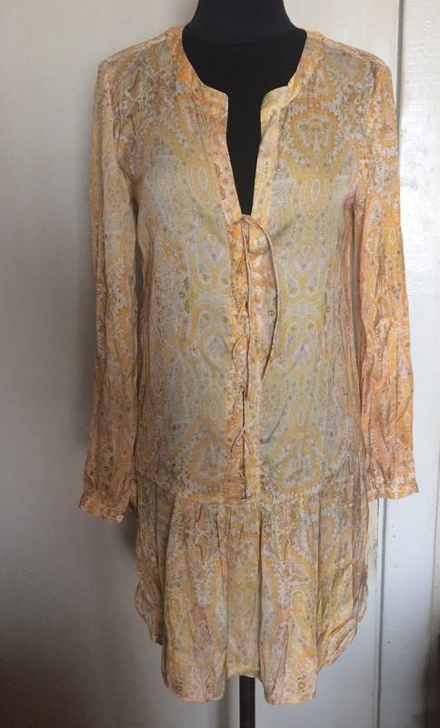 Нежное платье Zara , размер хс . Плечи 33/ рукав 58/ по груди 44/ длина 82/ по бёдра 44.