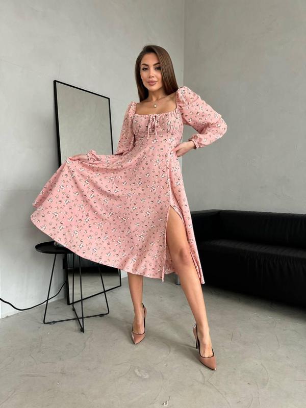 Обольстительное пудровое платье миди с принтом s-xl