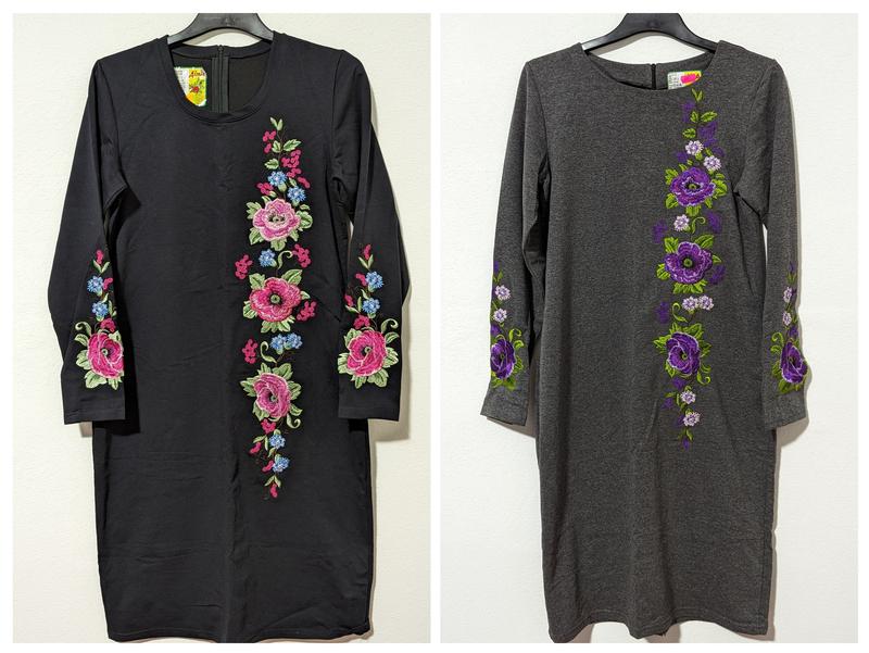 Платье футляр с вышивкой, хорошего качества, ткань тянется,100% хлопок. Прямой силуэт, красиво садится по фигуре, делает ее стройнее. Застегиваются на молнию на спине. Фото 2-6 в размере синее наш 50, серое 50 и 56. Цена 620грн. Фото 7-8 размер наш 62. Цена 730 грн.
