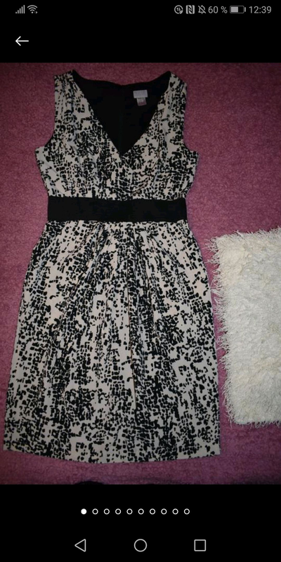 Тип одягу: Плаття В ідеальному стані, мінімальні сліди шкарпетки на резинці, пояс, остання фотографія додається. Сукня з підкладкою. Молочний колір, з чорним. Розмір на бірці S. Виміри за запитом.