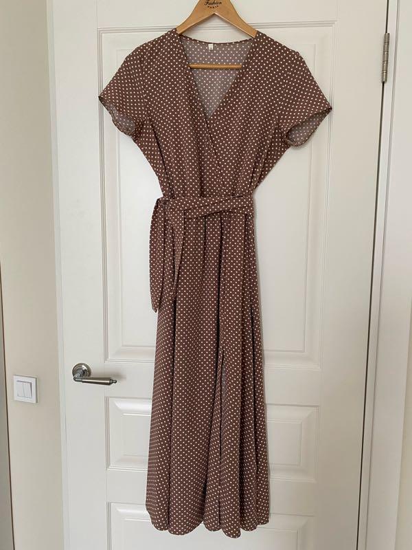 Виробник: Українське Тип одягу: Плаття Колір: Інший колір Плаття в мілкий білий горох кольору капучино Розмір 46, нове Ціна 750 грн.