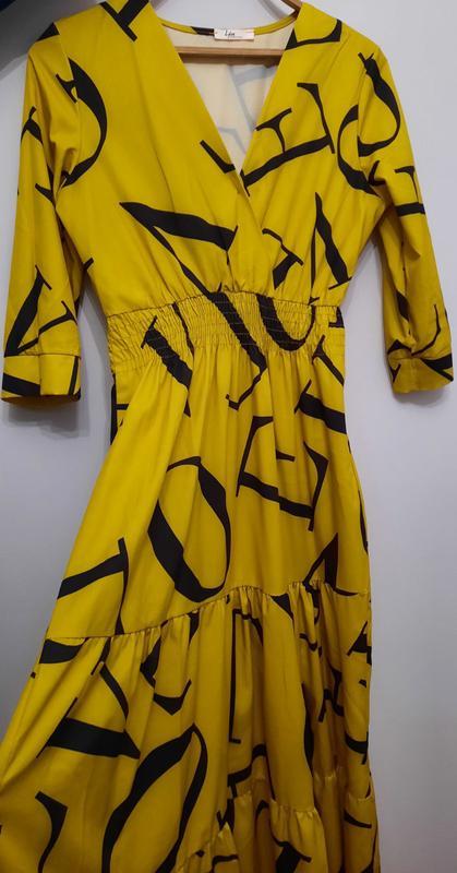 Виробник: Turkiz Тип одягу: Плаття Стильна сукня жовта, розписана чорними літерами. нова