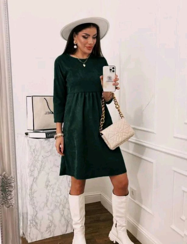 Виробник: Українське Тип одягу: Плаття Плаття модне з вельвету "Damira" Жіноча вельветова сукня вільного крою має круглу горловину, довжину трохи вище коліна та рукави три чверті. Головна особливість моделі — відрізна завищена талія. Такий фасон легко допоможе приховати кілька небажаних сантиметрів у зоні талії й животика. Уздовж спинки плаття застібається на потаємну блискавку. Виготовлений виріб із мікровельвету. Тканина має дуже приємну оксамитову текстуру та оригінальну фактуру в дрібний рубчик. Матеріал щільний, не просвічує, але водночас він досить легкий і негроміздкий. Характеристики Стиль: Casual Фасон плаття: Вільний Довжина від плечового шва:91-94 см Довжина рукава:47-49 см Сезон: Весна/осінь Матеріал: Сикровельвет  Таблиця розмірів Наявність на складі Колір42-44 46-48 50-52 Бежевий✓✓✓ Джинс✓✓✓ Смарагдовий✓✓✓ Фрезовий✓✓✓ Чорний✓✓✓