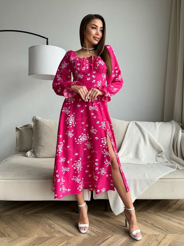 Молодежное ретро платье с открытыми плечами, выполненное из цветочного софта. Модель с длинными рукавами и рюшами. Модель миди длины имеет расклешенный низ кроя колокольчика с боковым разрезом. Цвета: зеленый, малиновый, черный, синий, белый Размеры :S, M, L, XL, 2XL ✅Оплата на карту или накладным платьем с подпиской 100 грн ✅Доставка новой и укр по почте в течение 3 рабочих дней ✅Обмен и возврат