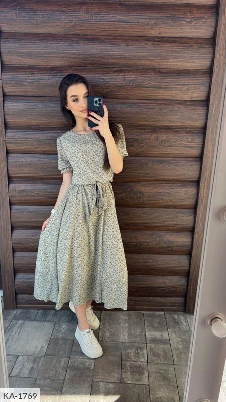 Платье на резинке с пояском, трикотажной подкладке с коротким рукавчиком 🔥🔥🔥 Модель-114❤️❤️❤️ Р-ри:48,50,52 Тканина-шифон🦋🦋🦋 Длина-мидi👍👍👍