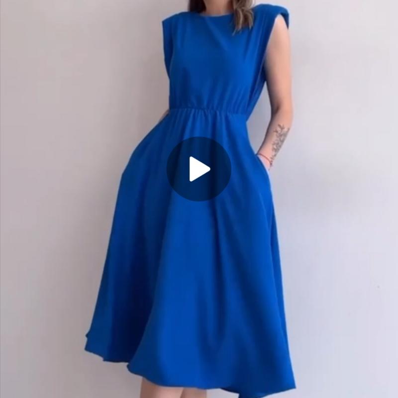 Платье миди с подплечниками и карманами цвет: электрик,малина, черный, красный.