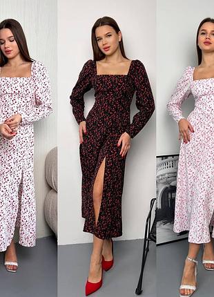 Модель 701 Женское платье Размерный ряд S,M,L,XL Тканина софт принт Цвета белая основа + красный, черный и белая основа +розовый Платье очень красивое и романтичное С длинным рукавом, впереди разрез, по спинке настрочная резинка, за счет чего идеально садится по фигуре Супер качество