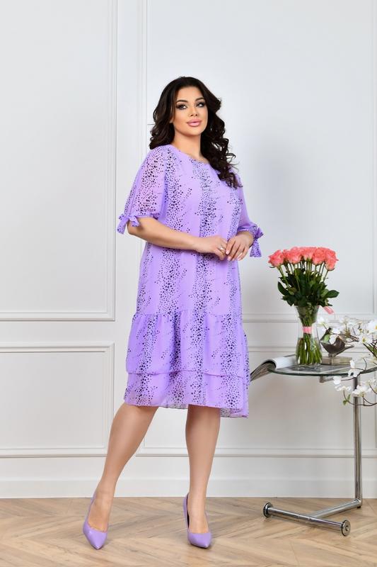 Ніжна сукня вільного з легкого шифону, та воланами. Рукава з розрізами і на манжетах із завʼязками. Гарно сідає по фігурі, не просвічується Матеріал: Шифон Країна виробник:Україна Кольори:Шоколад , бірюза, оливка,мʼята Розміри:від 50 до 64 Виміри згідно готового виробу Розмір 50-52 54-56 58-60 62-64 Обхват грудей 108 116 124 132 Обхват талії вільн. вільн. вільн. вільн. Обхват стег********** 142 Довжина виробу 102 104 106 108 Довжина рукава 33 34 35 36 Ширина рукава 41 44 47 50 Зріст моделі:171 см Розмір, вдягнений на моделі:54-56 Параметри моделі на фото:обхват грудей 110, обхват талії 87, обхват стегон 112 вш