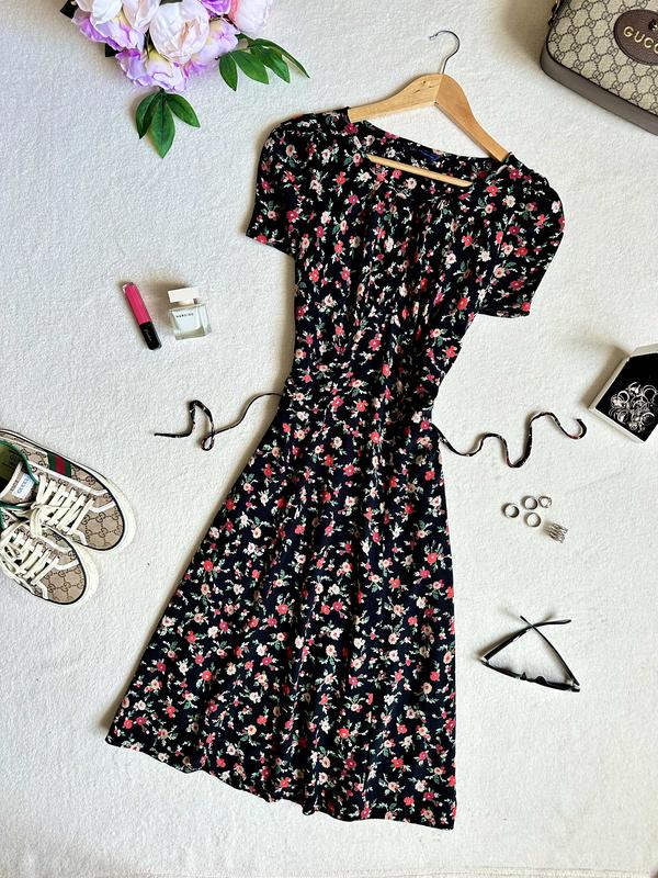 Большой выбор платьев. Цена на такого плана платье в других цветочках сейчас на сайте от 49фунтов =2500 гривен и выше R 74 Великолепное элегантное Платье, черное в цветах, платье миди, платье за колено Прекрасное актуальное и модное платье - мои рекомендации Есть поясок пришит сзади Новое, есть пломба от бирки, без бумажной Mark Spencer (цена от 3300на сайте) 10(м) ткань вискоза - не трикотаж, не тянется, замечательно качество По грудь 47-48 с учетом выточек По талия 42см - можно меньше из-за пояска По бедра 50-51 см , по низ 88 см - струится красиво! Длина 105 см. Качество ткани Замечательное! Его нужно увидеть, чтобы влюбиться. Красивые фигурные выточки на талии, по спинке, фото не передает. 855 грн