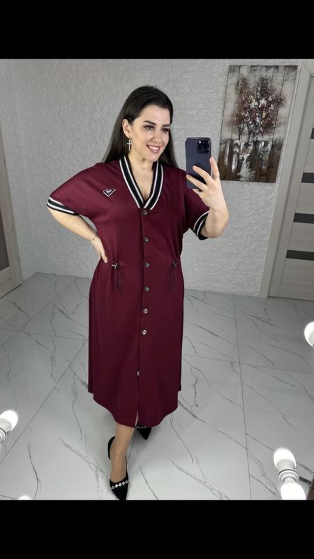 Юл 1.04 💐НОВИНКА 💐 Отримали в наявності в кількості , можна на рекламу 💐 Плаття Модель 94/3VL/0027 Розміри : 46-48,50-52,54-56,58-60,62-64 Тканина : італійський трикотаж ( якісна тканина , не кошлатиться , не линяє) Кольори : фреза , електрик , чорний , бордо Плаття-халат вільного крою повністю застібається на ґудзиках , на горловині та рукавах пришивний лампас, приспущений рукав до ліктя, талія вільного крою , на талії шляпна резинка з фіксаторами ( можна регулювати обʼєм талії). Параметри моделі ОГ108, ОТ86, ОС112, зріст 165см , на ній одягнений розмір 50-52. Заміри по виробу : Розмір 46-48 Обʼєм грудей 116 Обʼєм талії 112 Обʼєм стегон 120 Довжина рукава від горловини 40 Біцепс 36 Довжина 121 Розмір 50-52 Обʼєм грудей 124 Обʼєм талії 114 Обʼєм стегон 136 Довжина рукава від горловини 43 Біцепс 40 Довжина 125 Розмір 54-56 Обʼєм грудей 132 Обʼєм талії 126 Обʼєм стегон 140 Довжина рукава від горловини 44 Біцепс 42 Довжина 122 Розмір 58-60 Обʼєм грудей 140 Обʼєм талії 132 Обʼєм стегон 152 Довжина рукава від горловини 45 Біцепс 45 Довжина 123 Розмір 62-64 Обʼєм грудей 146 Обʼєм талії 144 Обʼєм стегон 156 Довжина рукава від горловини 45 Біцепс 47 Довжина 128 В2В #Наложка