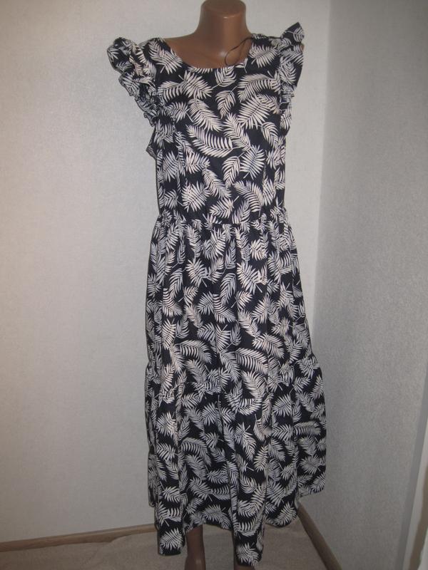 Хлопковое платье Jessica р-р евро 42, р-р14 принт листья ,100%хлопок, ПОГ51, ПОТ43+резнка до 53, ПОБ75, до талии 40, длина 125, отличное состояние, 390грн