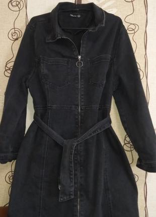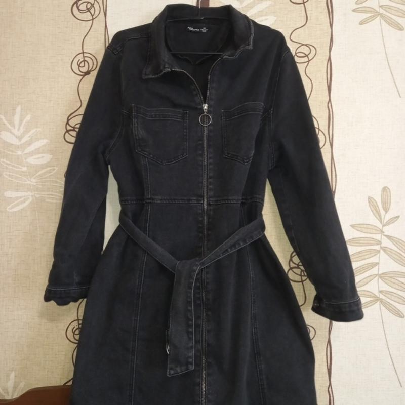 платье джинс,плотное,стан новой вещи,без нюансов,цвет темно-серый,на молнии,есть два кармана,размер 46,вле маломерит, присмотритесь замеры,е пояс, очень красиво сидит, носила мало, устала длина 97 рукав 58 пог 54 талия 50 плечи 45