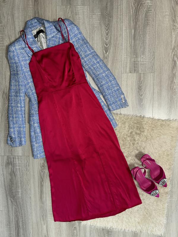 Невероятное атласное платье в цвете фуксия. Модель идет на тонких бретельках с регулировкой длины. Застегивается на скрытую молнию. Стан новой вещи, есть бирка. Ни раз не успела надеть. Роскошно смотрится на теле, есть разрез на ножке. Есть подкладка, не светит