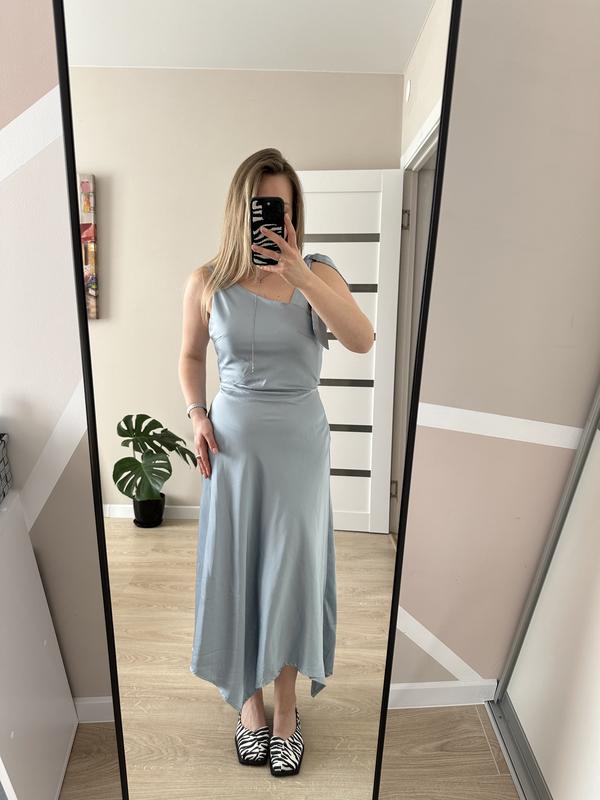 Супер нежное платье, укр бренд cher 17. Спинку можно завязывать по разному. Красивый цвет, на полосатую девушку будет выглядеть супер. Трещи перешила под себя ( добавила завязку на плече, потому что в оригинале платья очень сползало в груди и не держалось вообще, сейчас эта проблема решена). Ни разу не одела, покупала на свадьбу, но оно не произошло из-за войны.